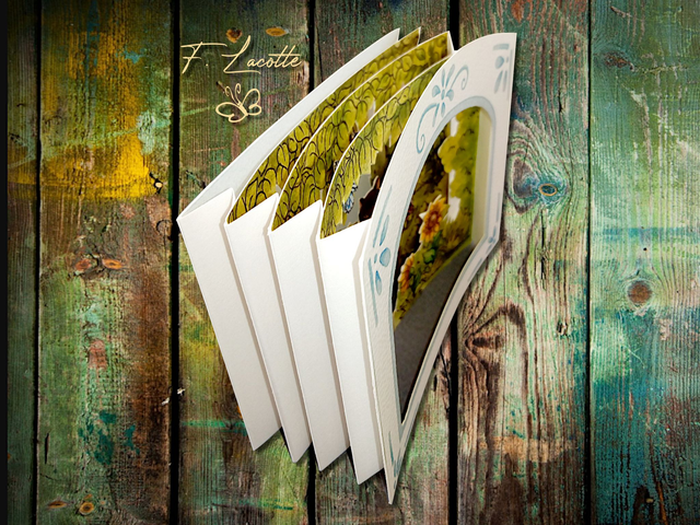 Carte tunnel à effet pop-up ( = effet 3D), mettant en scène un petit chat roux au cœur d'un paysage agrémenté de tulipes et de papillons. Cette carte est composée de 5 couches décorées et reliées entre elles par des charnières accordéon, offrant ainsi un effet de profondeur original. Chacun des décors dont elle est constituée a d’abord été conçu, dessiné puis peint à l’aquarelle avant d’être imprimé.